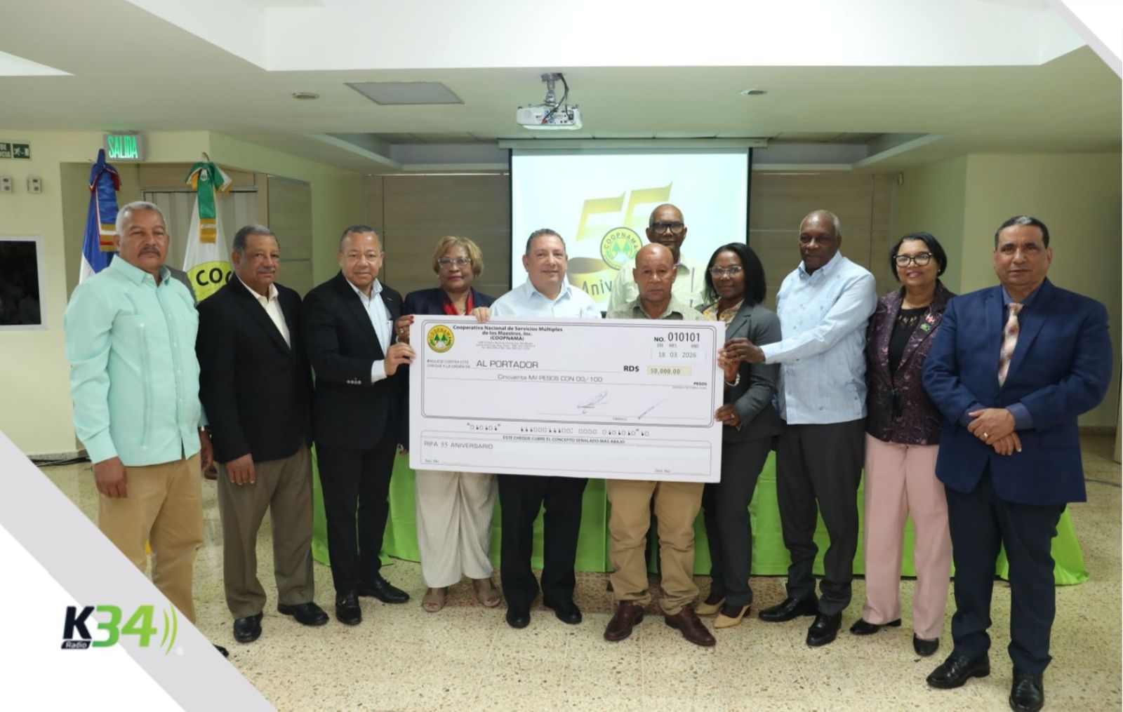 Santo Domingo.- En el marco de la celebración de sus 55 años de trayectoria institucional, la Cooperativa Nacional de Servicios Múltiples de los Maestros (COOPNAMA), realizó la entrega formal de 55 premios de RD$ 50,000 mil pesos cada uno a igual número de socios, reafirmando su compromiso con el bienestar económico y social de la familia magisterial.