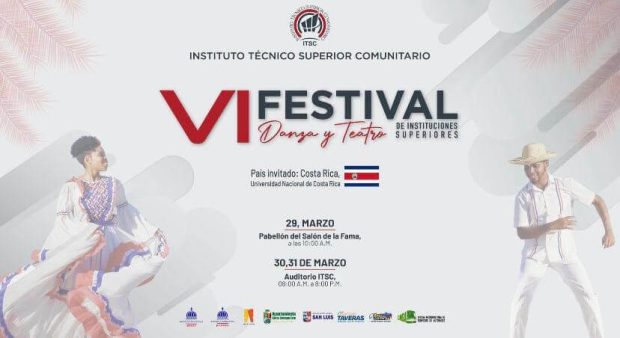 San Luis, Santo Domingo Este- el Instituto Técnico Superior Comunitario (ITSC), realizará los días 29, 30 y 31 de Marzo, el Sexto Festival de Danza y Teatro en Educación Superior, con la participación de la Universidad Nacional de Costa Rica y las áreas culturales de las principales universidades e instituciones a nivel técnico superior del país.