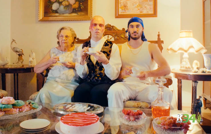 Fotograma videoclip LO DORADO Covert Art single LO DORADO. Ilustración por Matías Wenu Kewpü. Color por Gianfranco Musič cuales habita cada integrante de la banda al mismo tiempo, pues, con técnicas de montaje, se muestra que ambos personajes son solo uno. El dueto es un individuo.