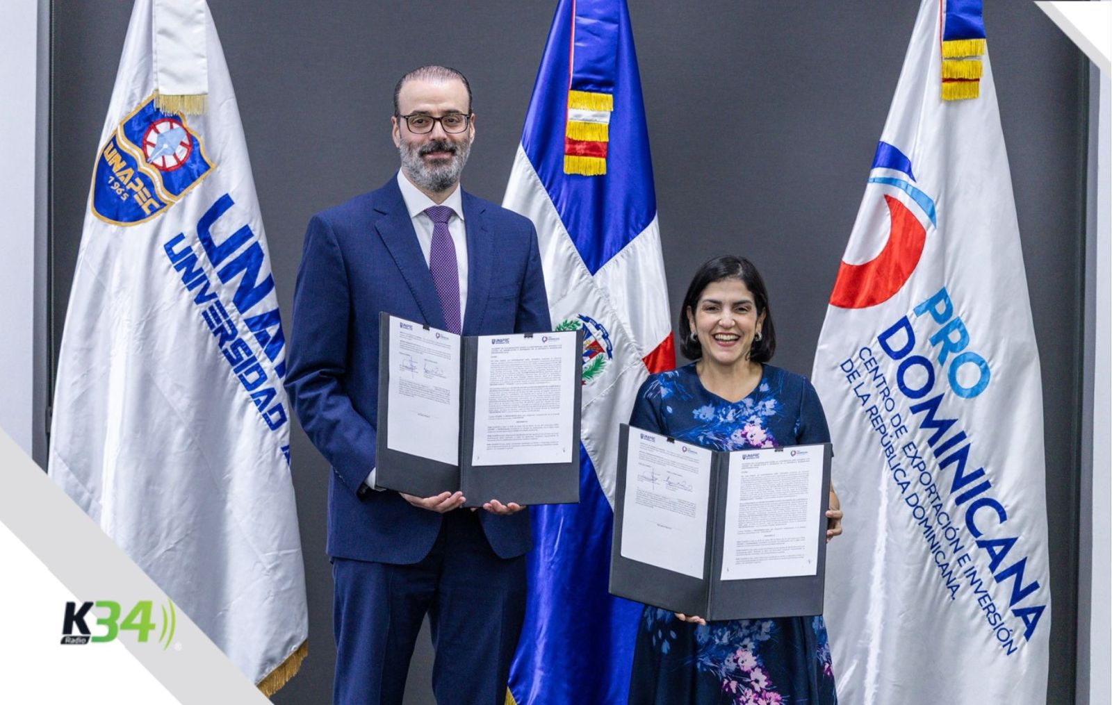 El acuerdo fue suscrito por Biviana Riveiro Disla, directora ejecutiva de ProDominicana, Alvaro Sousa Sevilla, presidente de la Junta de directores de Unapec, y como parte de la renovación del convenio firmado originalmente en febrero de 2024, cuya vigencia culmina próximamente, reafirmando así el compromiso de ambas instituciones con la educación superior, la innovación y el desarrollo económico nacional.