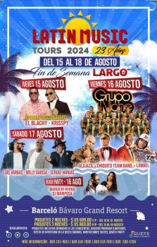 Bávaro, Punta Cana, R.D. – La 23ª edición del Latin Music Tours se llevará a cabo del 15 al 18 de agosto en el Barceló Bávaro Grand Resort, uno de los eventos más esperados del verano. El festival reunirá a destacados artistas colombianos y dominicanos, ofreciendo una experiencia musical inolvidable durante un largo fin de semana.